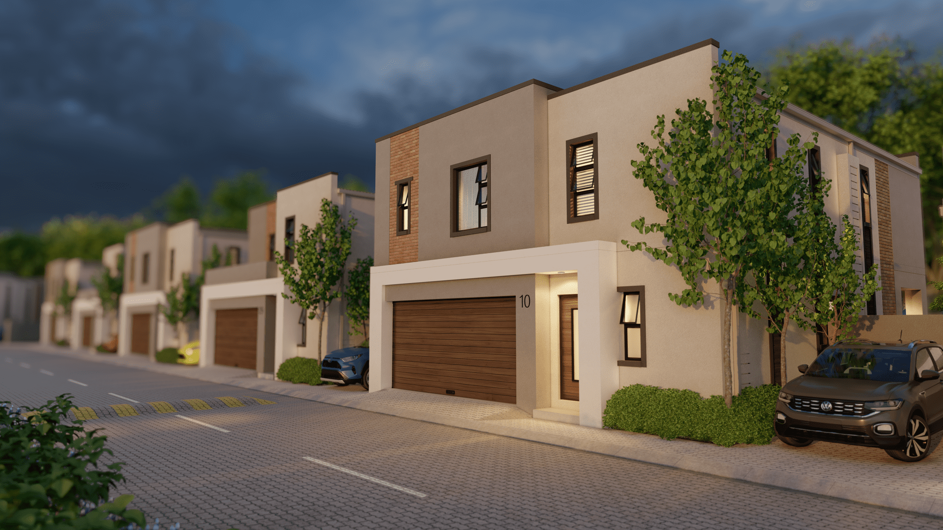 Luxury 3- and 4-bedroom double- and triple-storey townhouses in a secure, access-controlled Sarona City community.