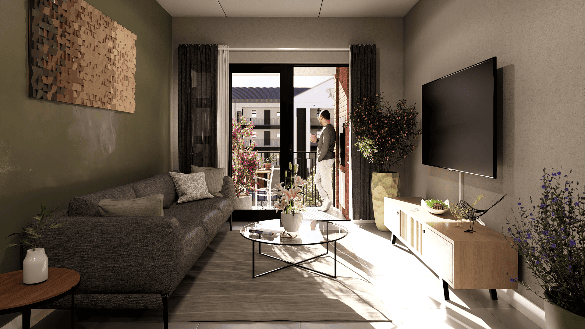 272 modern apartments near Gaborone Dam and Kgale Hill, with balconies, braai areas, covered parking, and secure access.